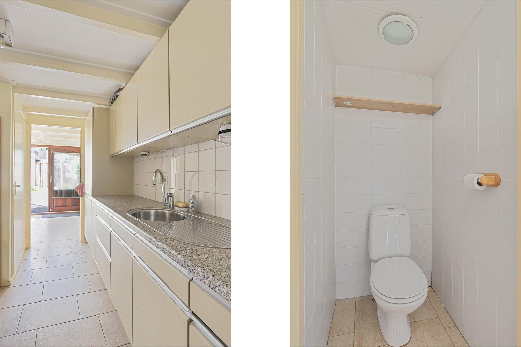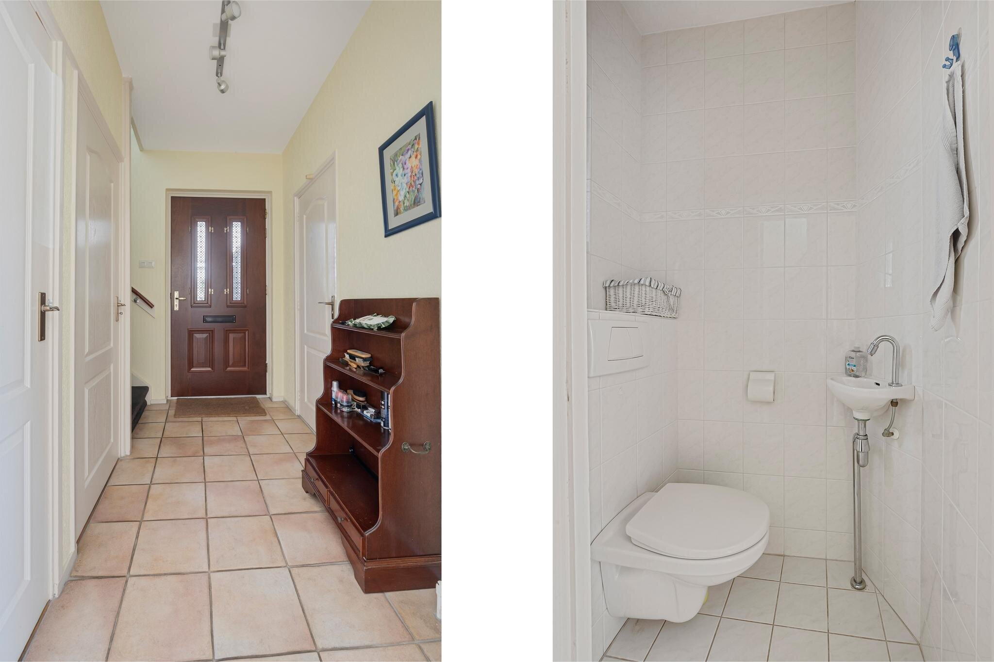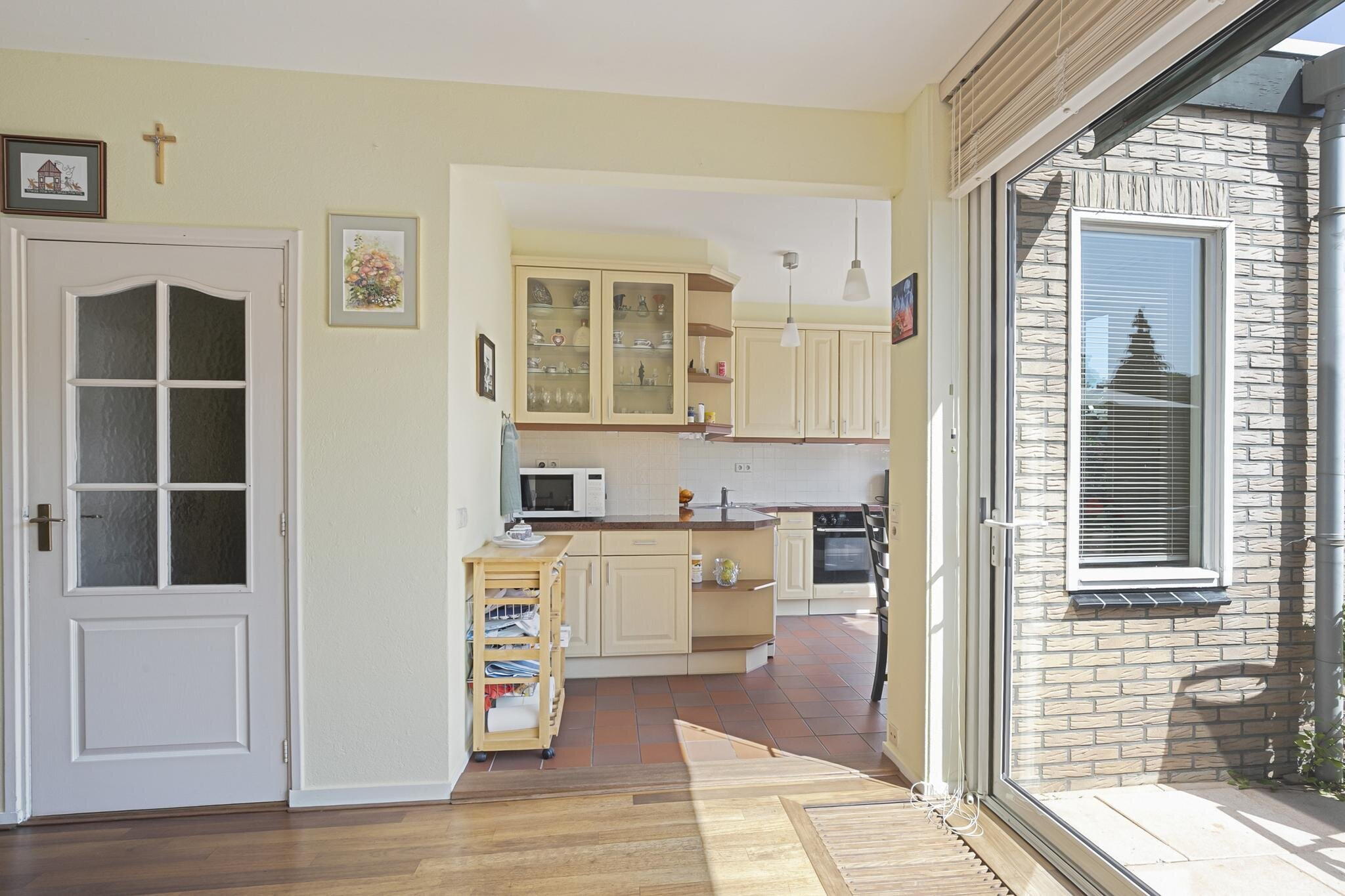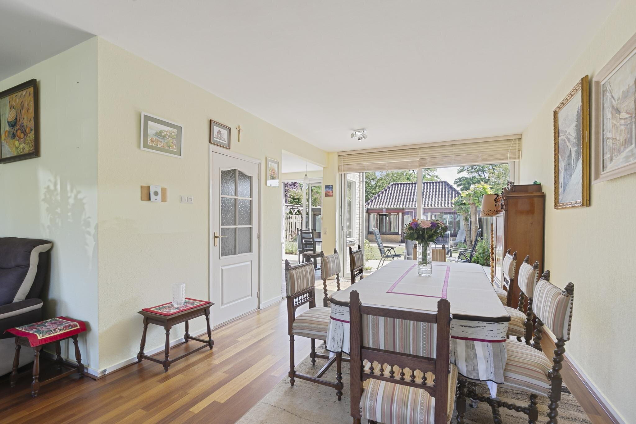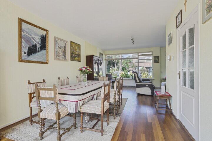 Entree van de woning in de hal. De hal is voorzien van het toilet met fonteintje, de meterkast, de trapopgang en er is ruimte voor de garderobe. Vanuit de hal komt u in de royale woonkamer welke is gesitueerd aan de voorzijde met een prettige uitkijk op de straat. Er is in het verlengde een ruim eetgedeelte met aansluitend de half open keuken. Vanuit de eetkamer is er een grote (aluminium) schuifpui naar de tuin en de keuken heeft ook een (aluminium) schuifpui naar de tuin. De keuken is uitgevoerd met een speelse L-vormig keukenblok voorzien van diverse inbouwapparatuur. Ook biedt de keuken ruimte voor een kleine eethoek. De woonkamer en eetkamer zijn voorzien van een parketvloer.