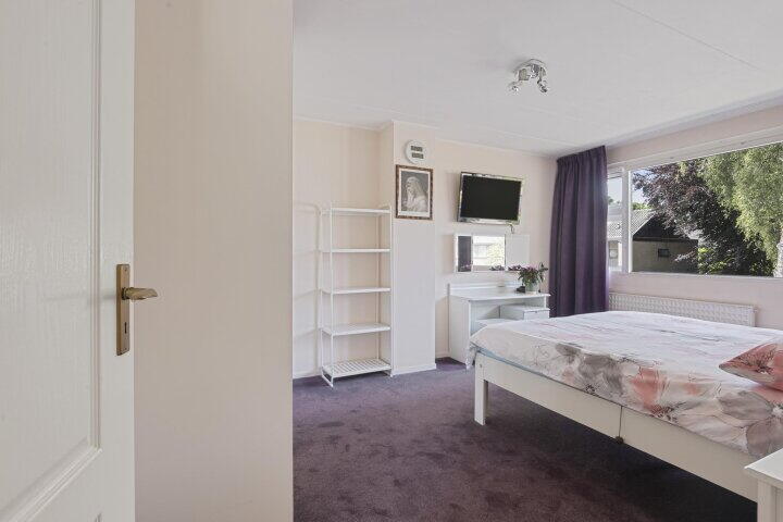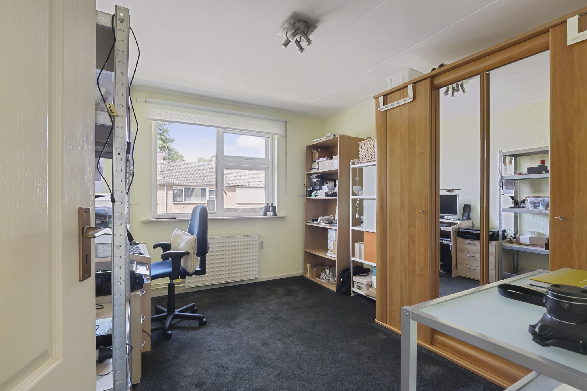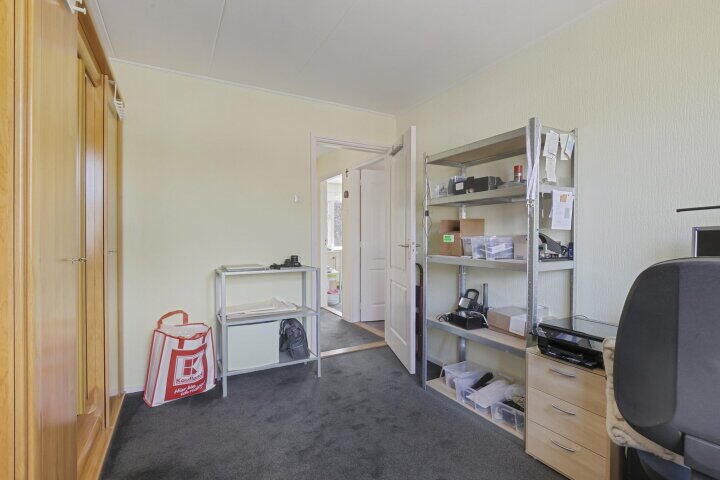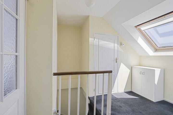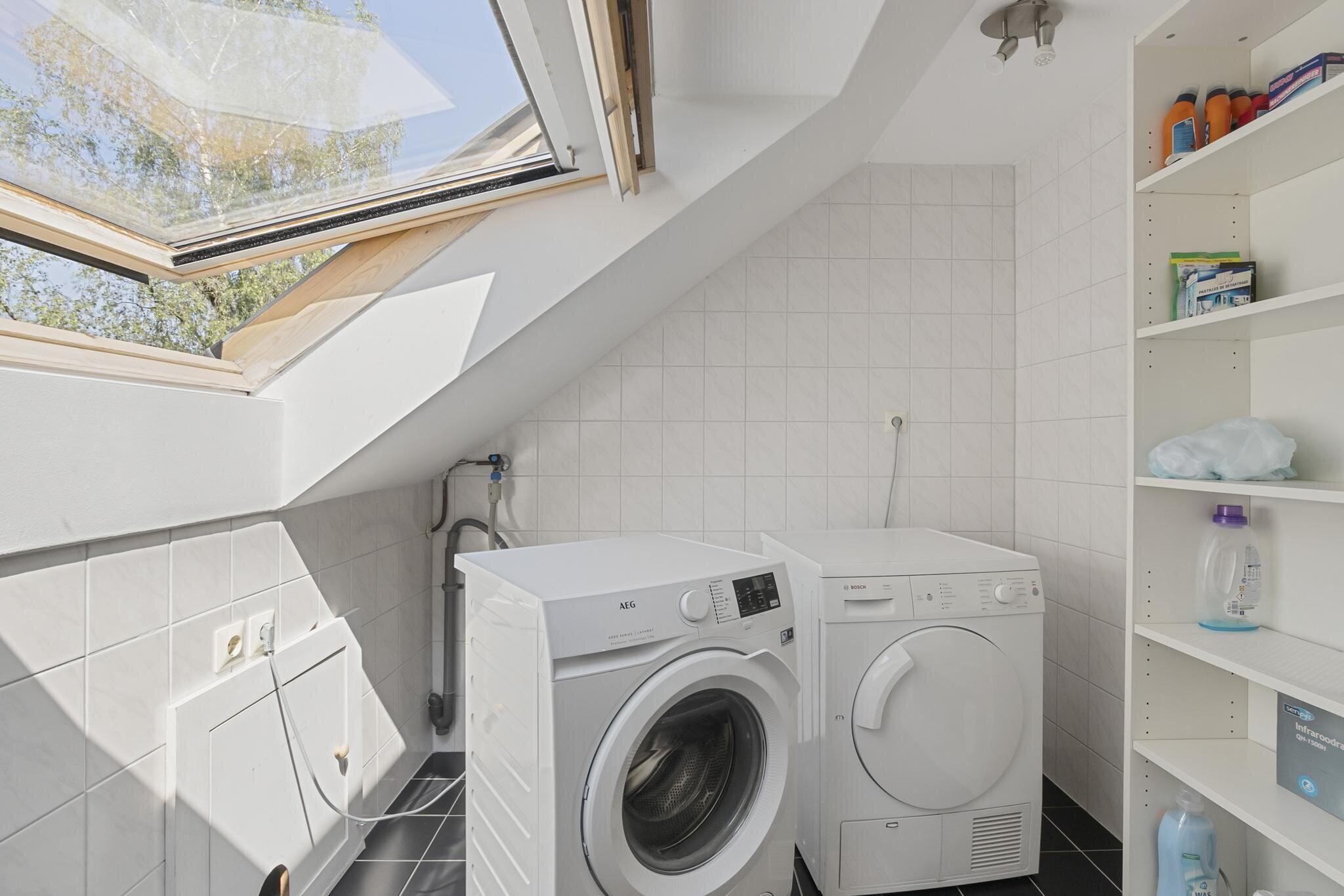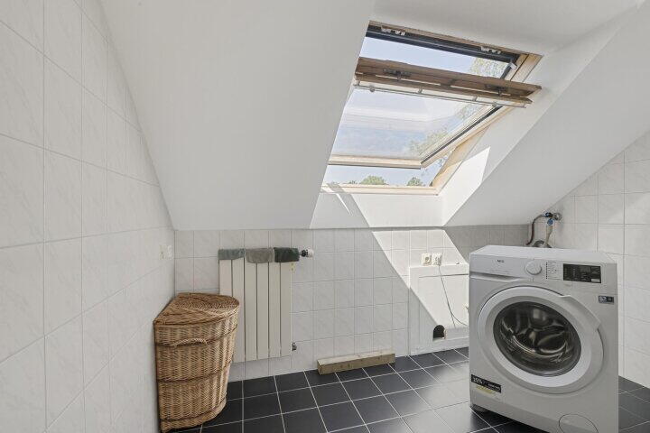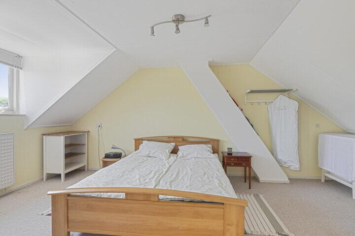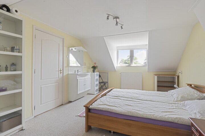 Eerst kom je op de overloop met groot dakraam, de aparte c.v. ruimte en hiernaast een hele praktische wasruimte met de aansluitingen t.b.v. de wasmachine en droger, ook hier is er daglicht door het aanwezige dakraam. De ruime 4e slaapkamer is voorzien van een kleine dakkapel en een extra wastafel met meubel.