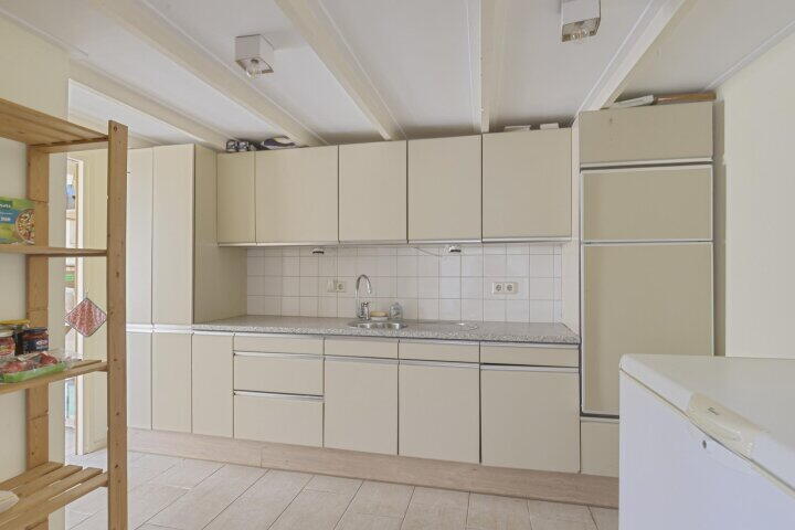 Dit royale bijgebouw bestaat uit een grote (werk)ruimte/atelier, een keuken met toilet en een grote berging. Het gebouw is volledig geïsoleerd, in spouw uitgevoerd en verwarmd door een eigen c.v. ketel. Dit alles maakt het zeer geschikt voor diverse doeleinden.